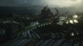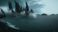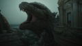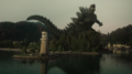 Godzilla swims among the hills of Indonesia. He passes the village of Waerebo on foot before returning to the water, then making landfall in Bali. Afterward, he rises from the sea in Bangkok, Thailand. A montage shows Godzilla standing and roaring in numerous locations in Southeast Asia, both urban and rural. Finally, amid a foggy city, he begins charging atomic breath, his dorsal fins, mouth, and eyes glowing green.