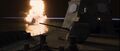 Godzilla fires his atomic breath at Ako
