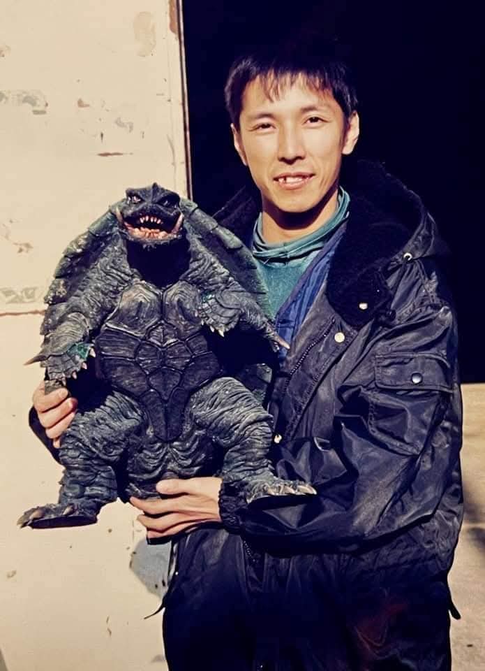 Akira Ohashi with a 1995 Gamera suit in 2017