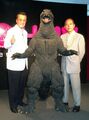 Akira Takarada(宝田 明, Takarada Akira) was a Japanese actor best-known among kaiju fans for playing Hideto Ogata in the original Godzilla and assorted roles in many subsequent entries in the franchise and other science-fiction films produced by Toho. He was one of three actors to appear in Godzilla films from the Showa, Heisei, and Millennium series, along with Kenji Sahara and Hiroshi Koizumi. He was also the first actor from the Toho Godzilla series to be cast in an American Godzilla film, portraying a Japanese immigration official in one of the first scenes shot for Legendary Pictures' Godzilla, although his scene was ultimately cut from the film. In the later years of his life, he became a frequent guest at American science-fiction conventions, and filmed a cameo for the 2014 fan film Godzilla Battle Royale during one such appearance.[2]