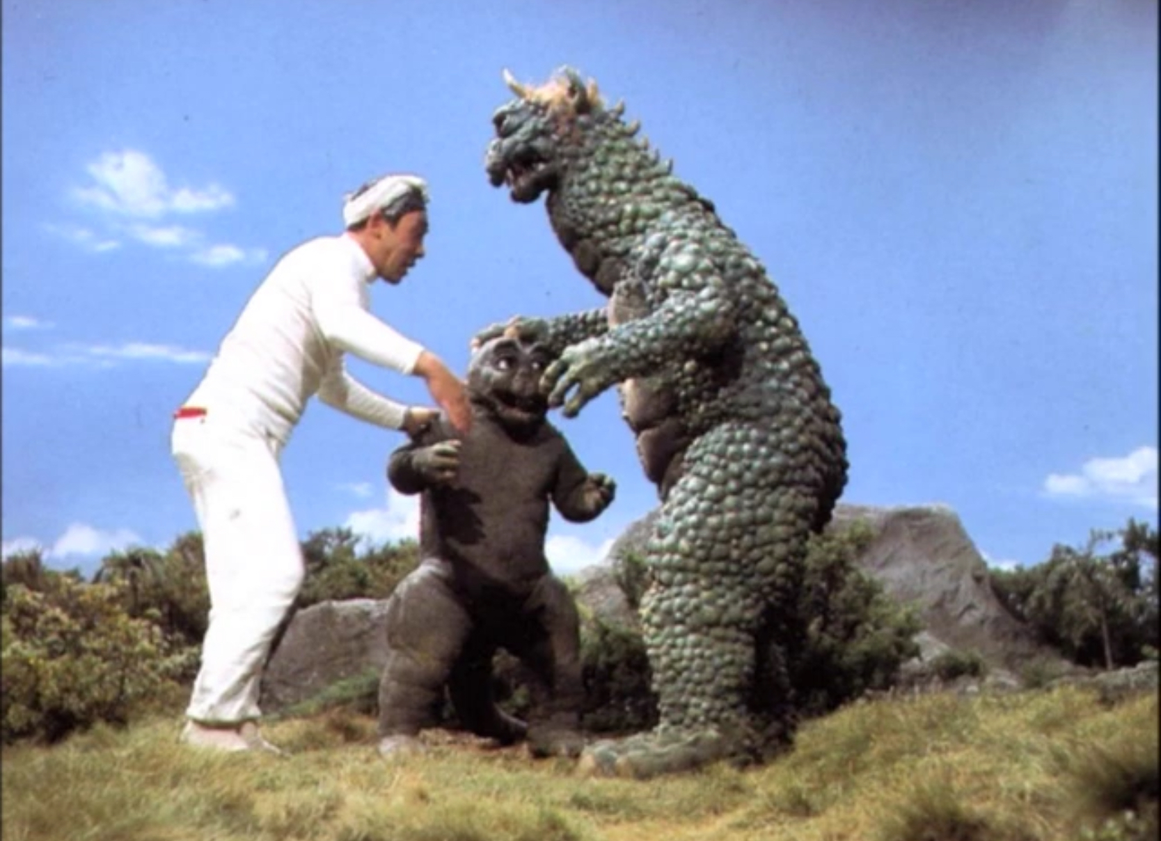 Ichiro and Minilla watch Godzilla prepare to fight Ebirah