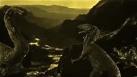Another Allosaurus later battled a Brontosaurus, with the Brontosaurus falling off the cliff edge of the plateau after it grabbed the throat of the Allosaurus. After this, the Allosaurus simply walked away.