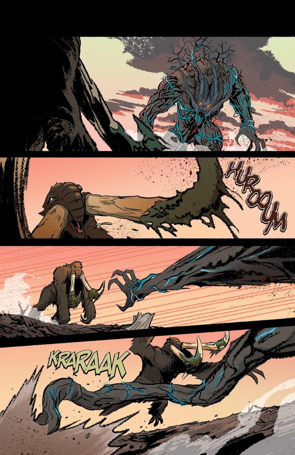 Amhuluk's encounter with Behemoth and Godzilla in the Amazon is told from Behemoth's perspective. Amhuluk rose out of a river and, seeing Behemoth healing the forest, challenged the Titan. In this telling, Behemoth failed to land a blow against Amhuluk, but leapt over his reaching arm as the battle began. Behemoth also did not regain consciousness until after Godzilla and Amhuluk departed the area.