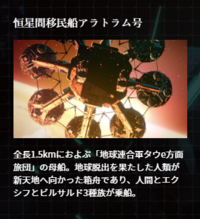 The Aratrum (アラトラム号 Aratoramu-gō) is an interstellar emigration spaceship utilized by the United Earth in the 2017 Godzilla film, GODZILLA: Planet of the Monsters. Its sister ship is the Oratio.