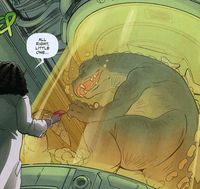 Deep within the most secretive and secure section of the ParaSOL scientific research facility, a comatose BabyGodzilla was being held captive in a tank. In the wake of the incident involving Rodan and Ebirah's escape, Dr. Fatima Ogbannaya approached the infant monster, telling him that "it's your turn now."