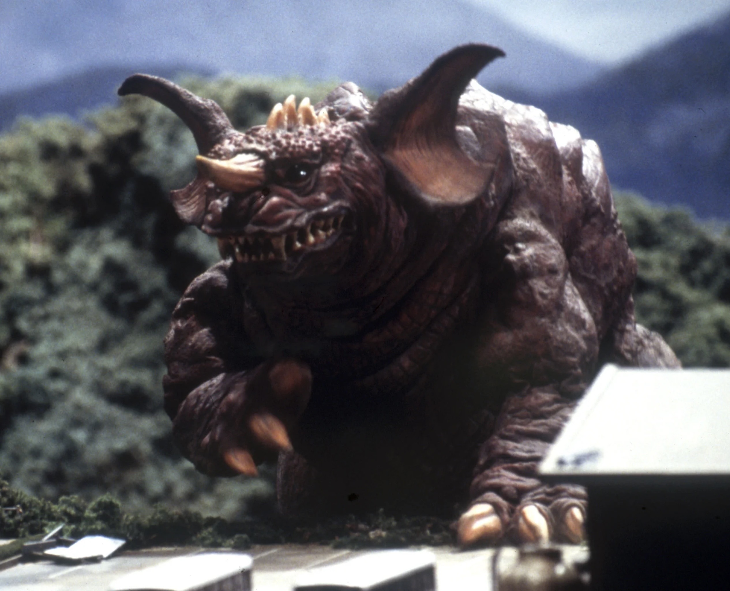Baragon's next film appearance came over 30 years later in 2001's Godzilla, Mothra and King Ghidorah: Giant Monsters All-Out Attack. After director Shusuke Kaneko discarded his story for Godzilla vs. M on the basis of it being too dark for the film he wanted to make, he conceptualized a film pitting Godzilla against three "Guardian Monsters." With the assistance of Keiichi Hasegawa and Masahiro Yokotani, Kaneko completed his first screenplay for this story under the title Godzilla X Varan, Baragon and Anguirus: Giant Monsters All-Out Attack. In this story, Baragon is the red-hot monster known as Baragora, with "Baragon" being the name that the JSDF assigns him. Baragon attacks Godzilla at Owakudani and is defeated, only to later be revived by a lightning bolt and join his fellow guardians Varan and Anguirus for the final battle against Godzilla in Yokohama. Though all three monsters are slain by Godzilla, they are able to weaken the monster enough for the Gotengo to eventually finish him off. Concept models of Baragon and the other three monsters were completed, while producer Shogo Tomiyama initially approved the project. However, Toho's executives requested that Kaneko work in the more popular monsters Mothra and King Ghidorah instead to increase the film's marquee value after the disappointing box office performance of Godzilla vs. Megaguirus. After learning that many of his colleagues were unfamiliar with the monsters that he chose to include in his story, Kaneko decided to replace Varan and Anguirus with Mothra and King Ghidorah, but retained Baragon in the final story. An early script speculated that Baragon was a dinosaur possessed by the energy of ancient spirits.[21]