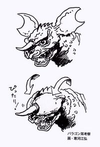 In the Showa series, Baragon is the descendant of a Mesozoic reptile called Baranosdragon (バラナスドラゴン Baranasudoragon) that survived into the modern day by living underground.[22][23]