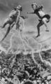During the Cretaceous Period, Baragon engaged in a great battle with Godzilla, Anguirus, and Varan. Baragon unleashed his heat ray on Godzilla, killing several dinosaurs in the process. Anguirus engaged Baragon by curling into a ball and striking him, though Baragon retaliated by spewing flames at Anguirus, knocking him into the ground. As a meteor shower fell to Earth, Baragon was forcefully stuck by one of the meteorites, his fate unknown.