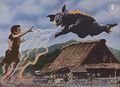 Years later, Baragon remained on the island, at one point battling Kumonga and Sanda as Rodan flew overheard. When the Trilopods later invaded the Monster Islands, one of the Trilopods gained Baragon's DNA. Baragon was then captured and imprisoned in the Trilopod hive, along with the other residents of the Monster Islands and all of Earth's kaiju. Later, King Caesar managed to free Baragon and the rest of Earth's monsters from the hive, with Baragon followed King Caesar to aid the severely outnumbered Godzilla in the battle against the Trilopods. Baragon attacked and successfully killed the Kumonga-Trilopod with his heat ray, before joining the other monsters to fight Magita. After Godzilla destroyed Magita, Baragon and the other monsters followed him out to sea.
