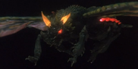 Impatient at a lengthy staredown between Godzilla and Gigan, Zagreth ordered Battra into combat. Gigan promptly shot down the evil moth with a laser blast, refusing to allow his honor to be sullied by another monster intervening in the duel.