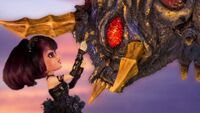 Battra could be seen in flashbacks as Torema and Lucas swapped questions: a flashback of Torema shooting at Battra while he was battling Mothra was shown while the two discussed the firepower of the Panna Torte, with another flashback of Mechagodzilla battling Battra being shown when the two discussed Mechagodzilla and Moguera.