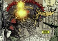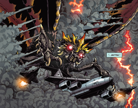 In the chaos that ensued in the wake of Earth-2 sending its monsters through an interdimensional portal, Battra emerged from the ocean as the rest of the kaiju laid waste to the Earth. All of the monsters were later left behind as the humans left the Earth as it became covered by tiny robotic cells that served as interdimensional doorways.