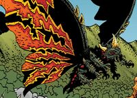 Sometime in the past, an imago Battra assisted Taigo in intercepting Gorath by carrying him into space while Mothra carried Mirei. When the Kilaaks populating Gorath weakened the two Godzillas by absorbing their energy, many of them took on the form of the ferocious fire dragon Kilafadoras that went after the two guardian moths. Battra chose to fight Kilafadoras alone to allow Mothra to make an escape, ultimately lending his energy to Taigo to become Super Godzilla.