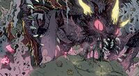 Battra has more minor roles in Godzilla: Gangsters & Goliaths, Godzilla: The Half-Century War, Godzilla: Cataclysm, Godzilla: Oblivion, and Godzilla: Rage Across Time. In Godzilla: Gangsters & Goliaths, Battra is a resident of Monster Island who lives peacefully on the island when balance between the monsters and larger cosmic forces is maintained. In Godzilla: The Half-Century War, Battra's origins are not explored outside of him first emerging at some point between Anguirus's 1967 appearance in Vietnam and 1975. In Godzilla: Cataclysm, Battra is one of many monsters who rampaged 20 years prior to the events of the main story; he appears only in flashbacks. In Godzilla: Oblivion, Battra is one of many kaiju originating from Earth-2 who is sent to Earth-1 when an interdimensional portal opens between them. In Godzilla: Rage Across Time, Battra lived during the Cretaceous as an enemy of Mothra. Unlike her, he is not seen in any other time periods after being dispatched by Keizer Ghidorah, leaving his fate unknown.