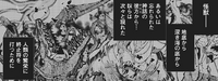 In the Kodansha Godzilla, King of the Monsters manga, Biollante's sap retains its corrosive ability even when shed like blood, as Godzilla suffers corrosive burns to his hands and face after grabbing hold of some of her vines and ripping them in half, blinding him momentarily. She later sprayed him with the sap across his chest, burning it and causing him to roar in pain.