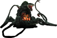 As Godzilla wandered into a forest in search of his kidnapped son Little, he was suddenly confronted by Biollante, who restrained him with her tendrils. Godzilla ripped the tendrils away, but found himself encased in silk from two Mothra larvae and surrounded by an army of Shockirus and Kamacuras. After dispatching the other kaiju with a nuclear pulse, Godzilla turned his attention to Biollante and struck her with his red Hyper Heat Ray. This attack burned Biollante to ash, though spores of energy ascended from her burnt remains and floated away. In the distance, these spores flowed into the dormant Kiryu, causing him to activate.