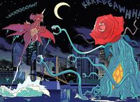 A Biollante named Sakuya was the guardian of the ancient Bio Forest, fighting to protect it from Desghidorah. A seed from Sakuya ended up on Godzi Godzi Island and grew into her humanoid daughter Erika, who befriended Little after he fell into her ravine. She and a pair of Matangos also from the Bio Forest ended up sending the Three Godzilla Brothers on a quest to help Sakuya protect the forest from Desghidorah.