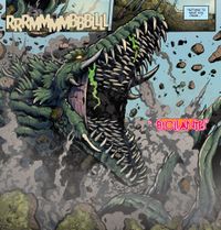 In Godzilla: Rulers of Earth, Biollante is portrayed as a simple-minded monster, only responding to the commands of her creators the Devonians who have her attack the Cryogs and Godzilla. She does retain some autonomy however, as her eyes widen and she releases Godzilla after having being blasted down the throat by an atomic breath, and even roars in pain as she is covered in magma.