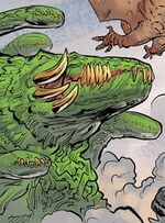 Biollante emerged from an interdimensional portal from Earth-2 alongside Mothra, Rodan, Anguirus, King Caesar, Hedorah, and Zilla while Godzilla was battling Mecha-King Ghidorah. Biollante engaged in the great battle before she eventually began rampaging through the city elsewhere. Later, after Mecha-King Ghidorah was defeated by Godzilla, all of the monsters were left behind as the humans left the Earth as it became covered by tiny robotic cells that served as interdimensional doorways.