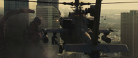 Several JGSDF AH-64D Apache Longbows were sent to engage Godzilla when he appeared in Shinjuku and began rampaging through Kabukicho. While they were initially able to hold him at bay with their guns and missiles, Godzilla destroyed a number of the helicopters in the ensuing battle before he ultimately transformed into his Burning form and shot the rest of them down with his atomic breath.