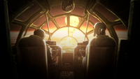 A single Boeing B-29 Superfortress appeared in the vision created by Metphies to bring Haruo Sakaki under his influence: Enola Gay, which dropped an atomic bomb on Hiroshima at the end of World War II. As Metphies explained that Godzilla Earth and Ghidorah's attacks on humanity were the fault of humans themselves, the human and Exif were transported by the vision into the cockpit of Enola Gay, where they witnessed the atomic bombing of the city. The vision was interrupted when Martin Lazzari and Maina prayed to Mothra to save Haruo. Immediately afterwards, a gigantic silhouette of Mothra slammed head on into the B-29, causing it to break apart in mid-air and giving Haruo enough awareness to hear Martin and Maina's calls for help, if only for a moment.