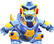 A skin for the brawler Nita in the game. In place of her bear hat and animal skin cloths, she has an outfit based on the Showa Mechagodzilla. For her Super, she summons Mechagodzilla (again modeled after the Showa version) instead of a bear. Her Hypercharge increases the size, health, and movement speed of the next Mechagodzilla she summons. Mechagodzilla Nita and her Mechagodzilla summon differ in color from the Showa Mechagodzilla, which incorporate varying shades of blue and yellow into their designs.