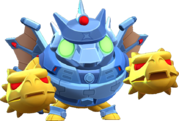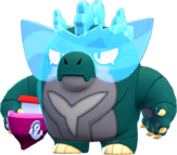 A skin for the brawler Tick in the game. Modeled after Mecha-King Ghidorah, the cybernetic middle head takes the place of Tick's head, and the organic King Ghidorah heads replace his arms. The torso, mechanical wings, legs, and tails are also based on Mecha-King Ghidorah, albeit in a chibi style. The Mecha-Tick Ghidorah Light skin has a darker steel color with yellow eyes on the heads; Mecha-Tick Ghidorah Dark has white scales for the organic King Ghidorah parts, pink eyes, and steel-gray metallic parts. The standard skin could be acquired from the Brawl Pass during the season, while the Light and Dark variants could be acquired from the Brawl Pass Plus.[2]