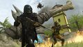 After the Nazis detonated toxic Nebula V bombs in cities around the world, Godzilla and King Kong awakened and ran amok in Caldera, an island in the Indonesian archipelago. The Titans did not actually battle each other, with Kong sticking to land and Godzilla roaming the waters around the island as 15 teams of four players vied to be the last one standing. Monarch, a secret organization which studies and defends against such Titans, aided players with intelligence and S.C.R.E.A.M. (Titan Sonic Communication Radar and Echolocation Array Module) Devices, which allowed them to briefly control one of the monsters. Otherwise, Godzilla and Kong did not actively target players unless they entered a Titan Frenzy. The squad which dealt the most damage to them during this event received S.C.R.E.A.M. Devices.