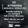 Call of Duty is a first-person shooter video game series published by Activision which began in 2003. Two of its games, Call of Duty: Vanguard and Call of Duty: Warzone, crossed over with Godzilla vs. Kong in a limited-time mode called Operation Monarch, which ran from May 11 to May 25, 2022.