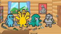 Chibi Godzilla, Chibi Ghidorah, and Chibi Anguirus destroyed a model city in Chibi Mechagodzilla's cabin, much to the robot's dismay. Chibi Ghidorah and Chibi Anguirus both apologized for their actions, pacifying the agitated Chibi Mechagodzilla, who forgave them. Chibi Godzilla then got Chibi Mechagodzilla to leave by telling him they would clean up the mess, though this proved to be another ruse as he planned to wreck even more of the city. Chibi Ghidorah attempted to dissuade Chibi Godzilla from continuing, but Chibi Godzilla tempted him and Chibi Anguirus with more destruction. Before they could initiate their second assault, however, the enraged Chibi Mechagodzilla caught them and blasted the trio with his eye beams before ordering them to fix what they could.