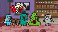 Chibi Godzilla taught a monster study session for the monsters of Monster Island. After Chibi Godzilla asked which foe had been hardest for Godzilla to defeat, Chibi Mothra suggested that it was himself because he may burn his mouth on his own atomic breath. Chibi Mechagodzilla dismissed this answer alongside the others' suggestions, only to discover that Chibi Godzilla's "real" answers to his questions were just as asinine, making him question whether or not this was a real class.