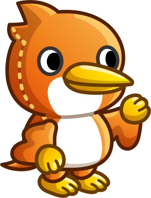 Chibi Rodan is a pterosaur with orange skin, a yellow, beak and a white belly. He has yellow claws on his wings and feet and two spikes on the back of his head.