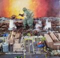 They reappear at Three Mile Island, and combat Godzilla for numerous hours. At the end of the long fight, Godzilla ends up victorious. Despite their initial harsh feelings, Cokra and Godzilla start to show signs of loving each other, such as Cokra giving Godzilla some flowers and a box of chocolates.