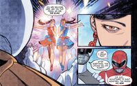While fleeing from the Kaiju Psycho Rangers by escaping into the Multiverse, the Power Rangers and Godzilla ended up on Infant Island and were greeted by the Elias. The Elias sent Mothra to battle the Kaiju Psycho Rangers before later following the Power Rangers back to their universe with Jet Jaguar's help. There, they assisted the Power Rangers and Zordon to upgrade their Zords with energy from various allies of Godzilla including Mothra and Godzilla himself into the Kaiju Zords.