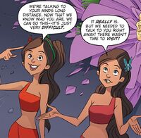 • In the comic series Godzilla: Monsters & Protectors, the Shobijin were originally meant to create human-sized disguises using their telepathic powers - an ability they had not demonstrated before. Ultimately, Toho vetoed the idea.[4] The original idea can be seen in a early cover.