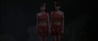 The Shobijin sing songs to Mothra in nearly all of their film appearances. This is most likely due to the fact that the actresses who first portrayed the Shobijin, Emi and Yumi Ito, were a popular singing duo in Japan known as the Peanuts. Ever since, the Shobijin have continued to sing in various films featuring Mothra. There are various songs that the Shobijin have sung, including: