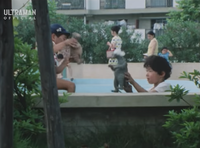 - In episode 34 of Mirror Man, "SGM vs. Mirror Man", two Science Guard Members ask a housewife if she's seen any monsters about, only for her to point towards two children playing with toys of Daigoro and his mother in the playground sandbox.