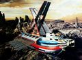 The Daimakan (大魔艦 Daimakan, lit. Giant Demon Ship) is an alien battleship which appears in the 1977 Toho tokusatsu film, The War in Space. The personal starship of the Yomi Alien Commander Hell created as a weapon of interplanetary conquest, it was stationed on Venus as a temporary base of operations. The craft is equipped with a vast array of advanced weaponry and houses a fleet of Hell Fighters.