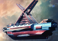The Daimakan is able to store and deploy 75 Hell Fighters from a compartment in the ship's stern.