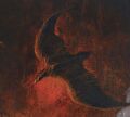 Godzilla's journey through Hell brought him to the abysmal plain of the underworld, a volcanic land of ruined cities. He soon spotted the Demon Rodan flying overhead, and the possessed kaiju moved to attack him. The Demon Rodan narrowly dodged a blast of atomic breath before retreating to the ash cloud of a nearby volcano to prepare for another drive. The monster flew at Godzilla once again, only to be felled by a swiped of his tail. The Demon Rodan crashed into one of the hellish cities below as Godzilla quickly advanced into an icy realm.