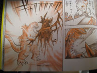 In this short adaptation of Godzilla vs. Destoroyah featured as a bonus in the reference book Godzilla vs. Destoroyah Great Encyclopedia, Destoroyah has the same role as in the original film. His defeat occurs in a different way; rather than being killed by a combination of Godzilla's meltdown and G-Force's freezer weapons, Godzilla grabs hold of Destoroyah as his meltdown begins, causing his body to disintegrate.
