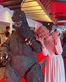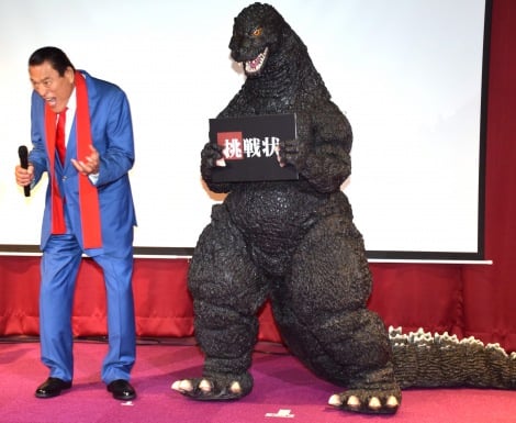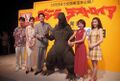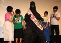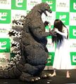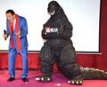 Godzilla appearing in a 1996 stage show to assist other heroes.