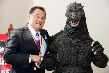 Roland Emmerich, Patrick Tatopoulos, and Koichi Kawakita with the DesuGoji