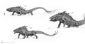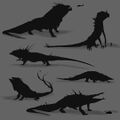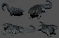 Concept art for enamel pins of Behemoth, Doug, and Tiamat made as backer rewards for the Godzilla x Kong: The Hunted and Monsterverse Declassified Kickstarter