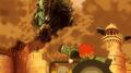 Yun and Haberu listen to the messages reordered by Ashihara's list, but neither can understand their meaning. Jet Jaguar informs the pair that two events weren't included, as one was Yun's phone call to Misakioku and the other wouldn't occur for another four days. Haberu realizes that Longhorn Beetle is Mei. As they put this together, the mansion's radio begins to play "ALAPU UPALA." At the same time, Mei hears the song on her ride to SHIVA, which Lina explains is a local lullaby about parting and coming back together in the ocean. They suddenly spot Red Dust over a nearby village, generated by Salunga as it routs local police and armored military vehicles. A SHIVA mercenary fires two Orthogonal Diagonalizer missiles under BB's supervision to impale and temporarily hold Salunga in place with solidified Red Dust. Lina arrives shortly after and reunites with her father, introducing him to Mei. In Tokyo, the JSDF's assault seemingly downs Godzilla Terrestris, only for him to recover as Godzilla Ultima. He uses a sustained blast of atomic breath to destroy attacking tanks and set the city ablaze.