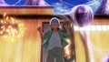The police arrive at the scene to find small Kumonga parts scattered about, still twitching but no longer posing a threat. They are suddenly attacked by a similar winged species, Hanenga. One of the employees suggests they should rescue Kanda and escape using their nearby boat, as he's carrying a key to it. Haberu and Goro move to free him while leaving Yun in charge of Jet Jaguar. As she details the Catastrophe, he questions whether the true problem is with the super calculator or the future itself. He proposes that the Catastrophe is the uncontrolled growth of Singular Points.