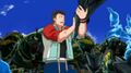 As they discuss the vital assistance of Jet Jaguar against Anguirus, the robot is waging an even more desperate fight against hordes of Kumonga. The insect-like kaiju have it, the Otaki Factory trio, and the two shipyard employees completely surrounded, and refuses to fall to its strikes. One of the employees has radioed for backup, but Haberu Kato, struggling to hold back one Kumonga with some assistance from Goro Otaki, questions whether they can survive on their own for another few minutes. Jet Jaguar launches the monster backwards, after which Yun Arikawa suggests the humans take shelter in a room inside the warehouse. Though Jet Jaguar is continuing to hold its own against the horde, its battery level is close to depletion. Yun receives more messages from Mei relaying the existence of a super calculator which is required to make Archetype - and vice versa. The Orthogonal Diagonalizer would offer a solution if completed, but using it now would risk triggering the Catastrophe, which she's presently researching. Yun tells Haberu and Goro that her findings may decide the fate of the world. The employees spot their fellow, Kanda, trapped in the monsters' web along with several desiccated corpses.