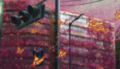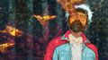 Otaki Factory works to attach a flight pack to Jet Jaguar. As they do so, more of the moths appear. Goro identifies them as silk moths, though their color is wrong. He utters a quotation—"The flight of the yellow butterfly is a sign of warfare"—before he, Yun, Haberu, Yushiyasu, and three trucks of soldiers set out for Godzilla. Deep within the plume of Red Dust, the monster roars.