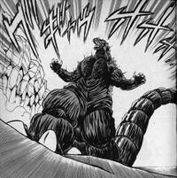 In the Kodansha manga Godzilla, King of the Monsters, Fake Godzilla could unleash a laser from his mouth that looked identical to Godzilla's atomic breath. It used this laser to destroy buildings at an oil refinery.