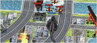 Fake Godzilla firing its finger missiles after being provoked by Yosuke's ASTOL-MB93